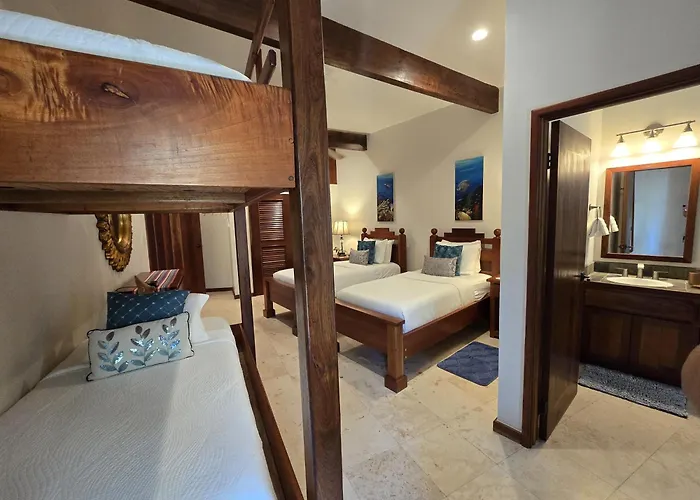 Overlooking the sea, the beachfront 3-bedroom Indigo Belize 1B Condo San Pedro is 2.3 miles from Belizean Melody Art Gallery in San Pedro. Guests can take advantage of Wi-Fi, and free private parking is available on site for those who travel by car.